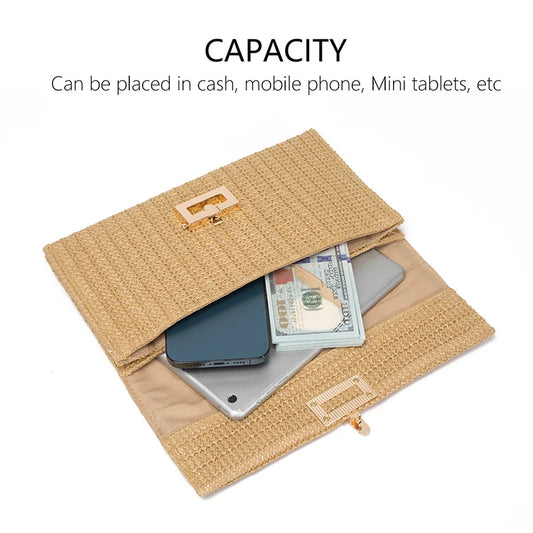 Bolso Clutch de Paja para Mujer – Estilo Boho de Verano para Playa, Viajes y Eventos