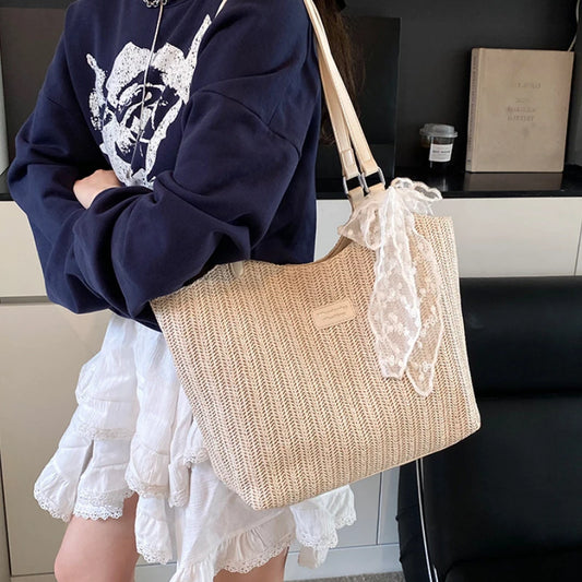Bolso Tote de Playa de Gran Capacidad Tejido a Mano – Bolso de Hombro Casual de Verano