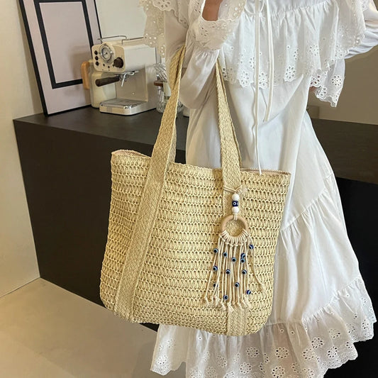 Bolso Tote Tejido de Verano para Mujer – Gran Capacidad con Borla Decorativa