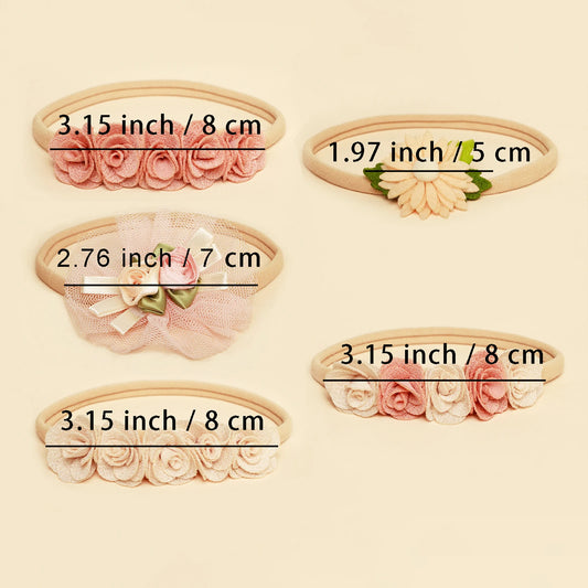 🎀 Set de 5 Diademas para Bebé Niña con Flores y Encaje – Dulzura para Momentos Especiales 🌸
