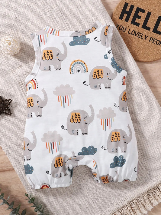 🐘🌈 Enterito de Verano para Bebé Niña con Elefantito y Arcoíris – Suave y Adorable 🌈🐘
