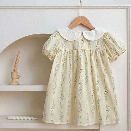 Vestido Floral Morado para Niñas – Cuello Bordado y Diseño Estilo Boutique (1–6 Años)