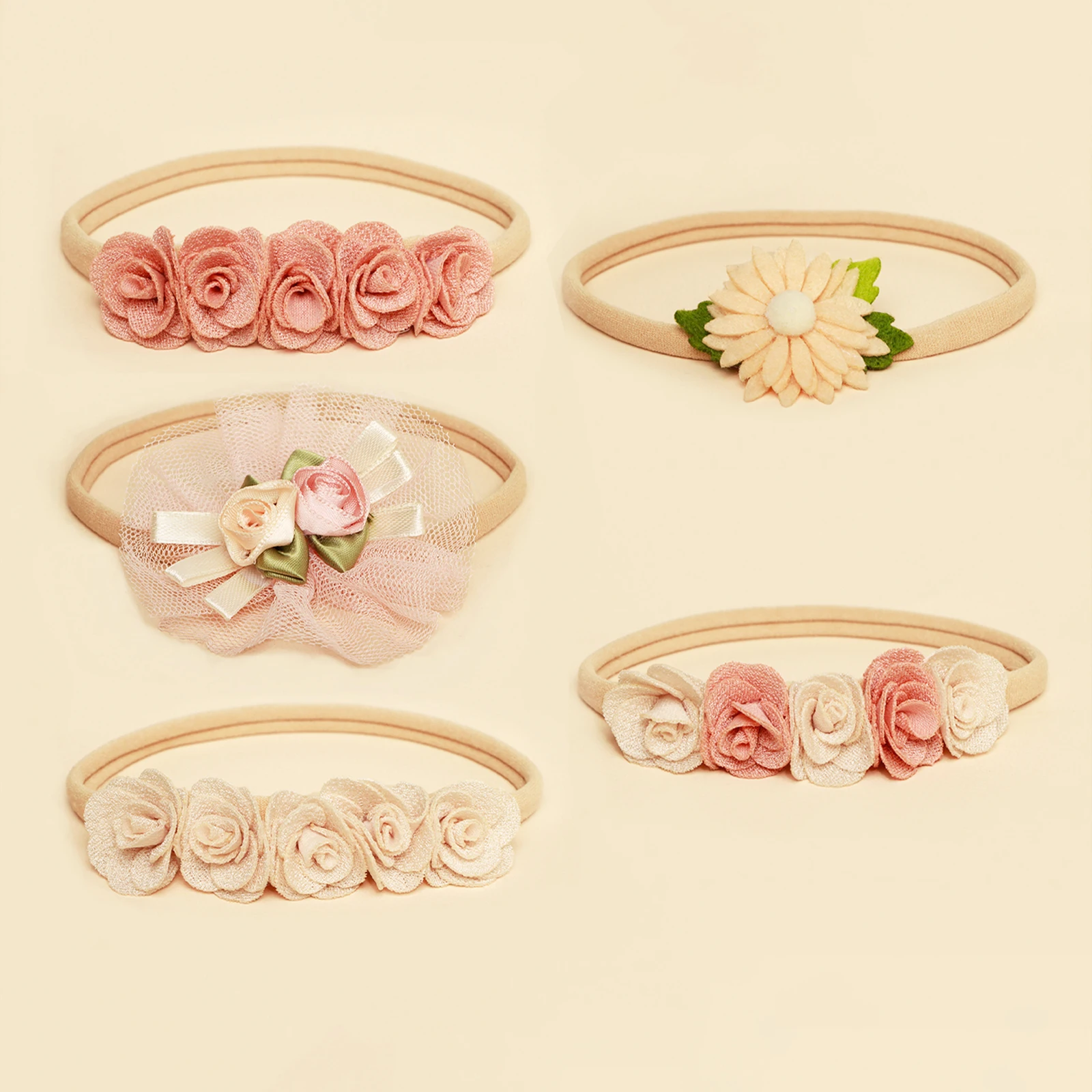 🎀 Set de 5 Diademas para Bebé Niña con Flores y Encaje – Dulzura para Momentos Especiales 🌸