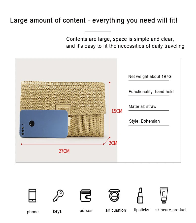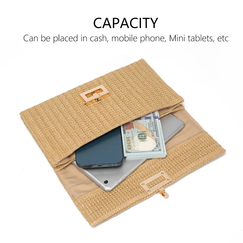 Bolso Clutch de Paja para Mujer – Estilo Boho de Verano para Playa, Viajes y Eventos