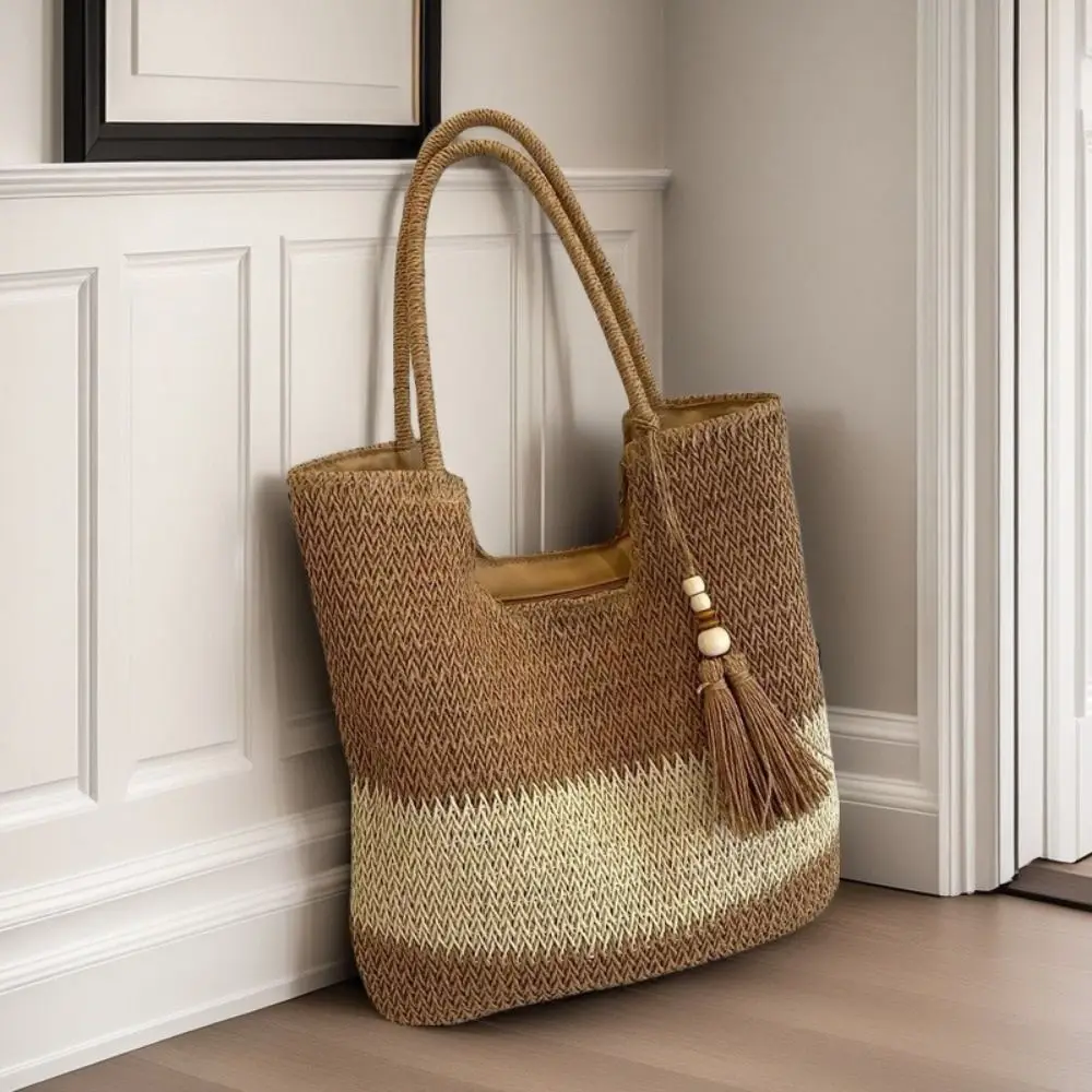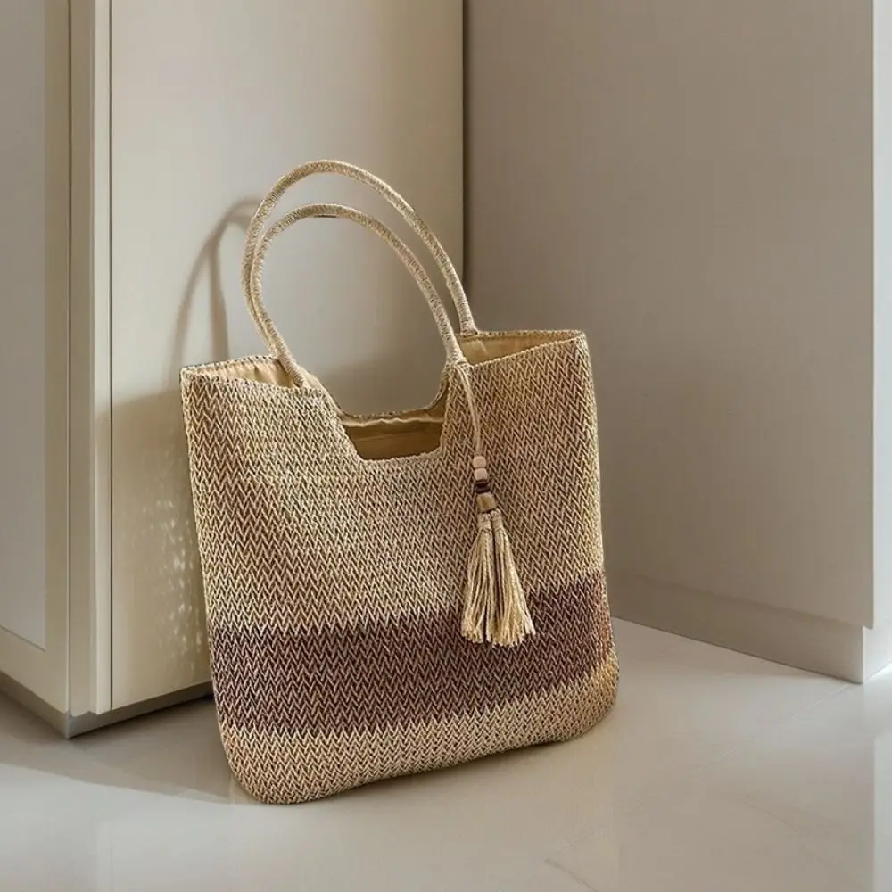 Bolso tejido de paja con Borlas – Tote Grande y Ligero para Viajes y Verano