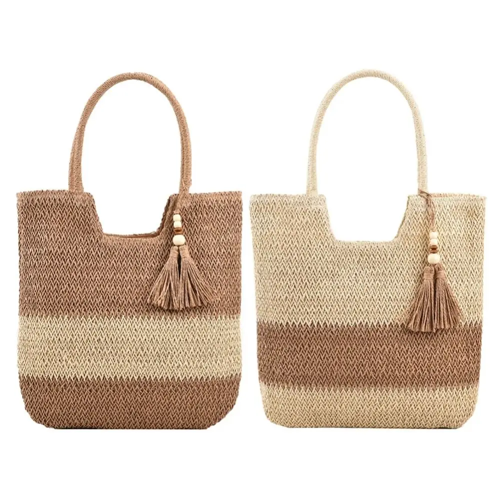 - 1 × Bolso de playa de paja con borlas
