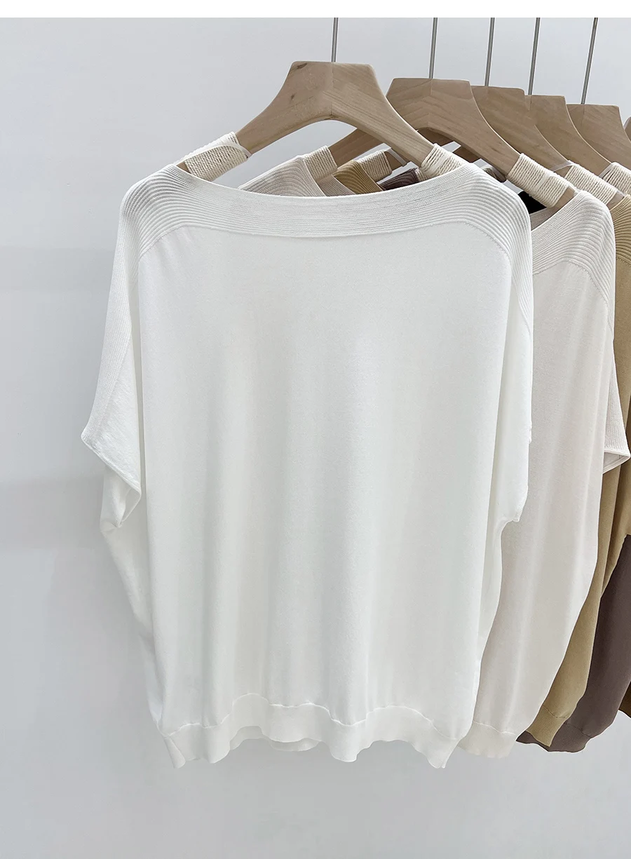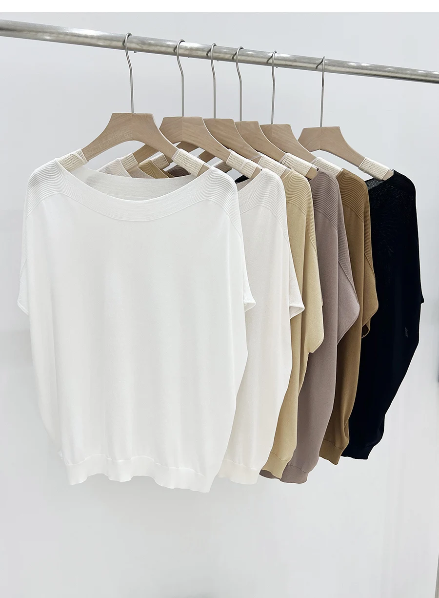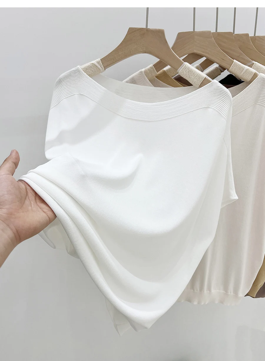 Camiseta Mujer Talla Plus de Un Hombro en Punto Ice Silk – Estilo Fresco y Sofisticado
