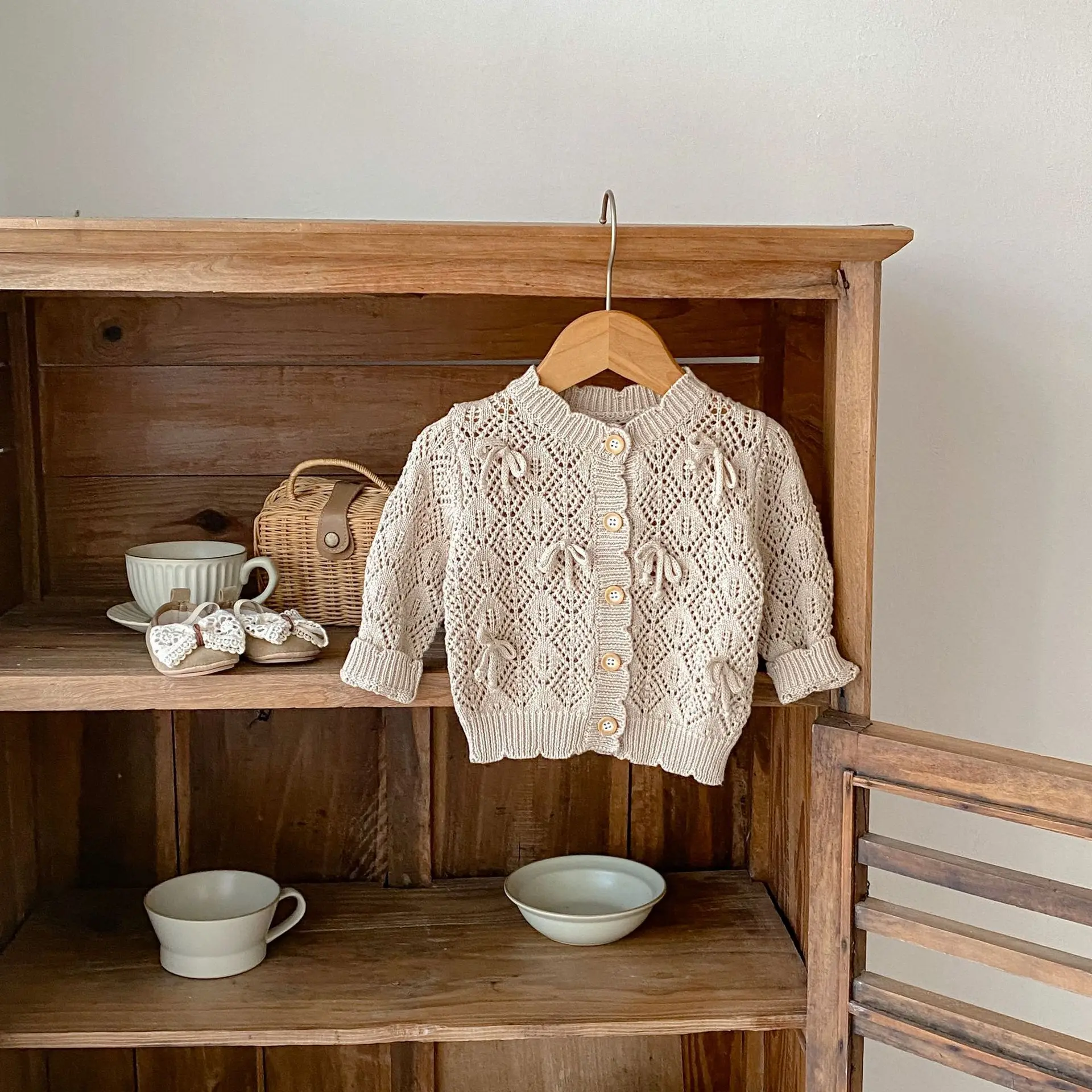 Cárdigan Tejido Infantil para Bebé – Chaqueta Calada con Lazo para Primavera y Otoño