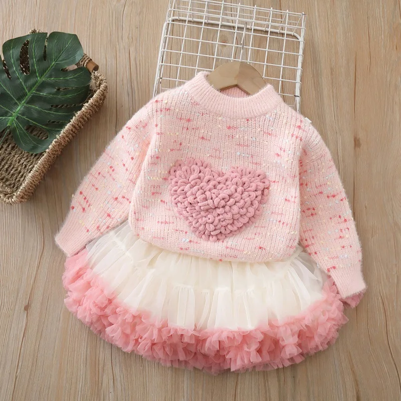 - Conjunto de 2 piezas: suéter de punto + falda tutu de tul