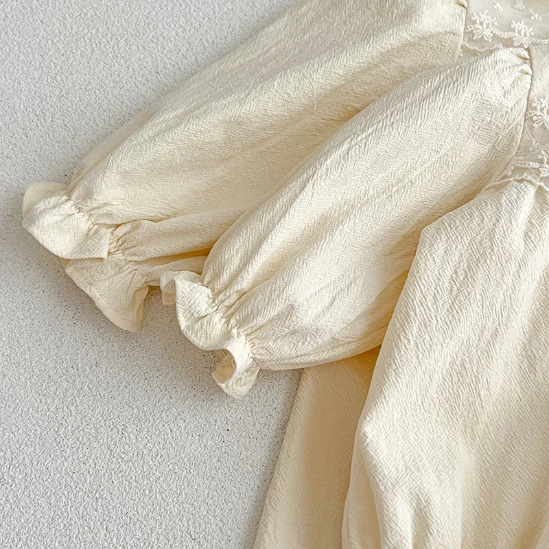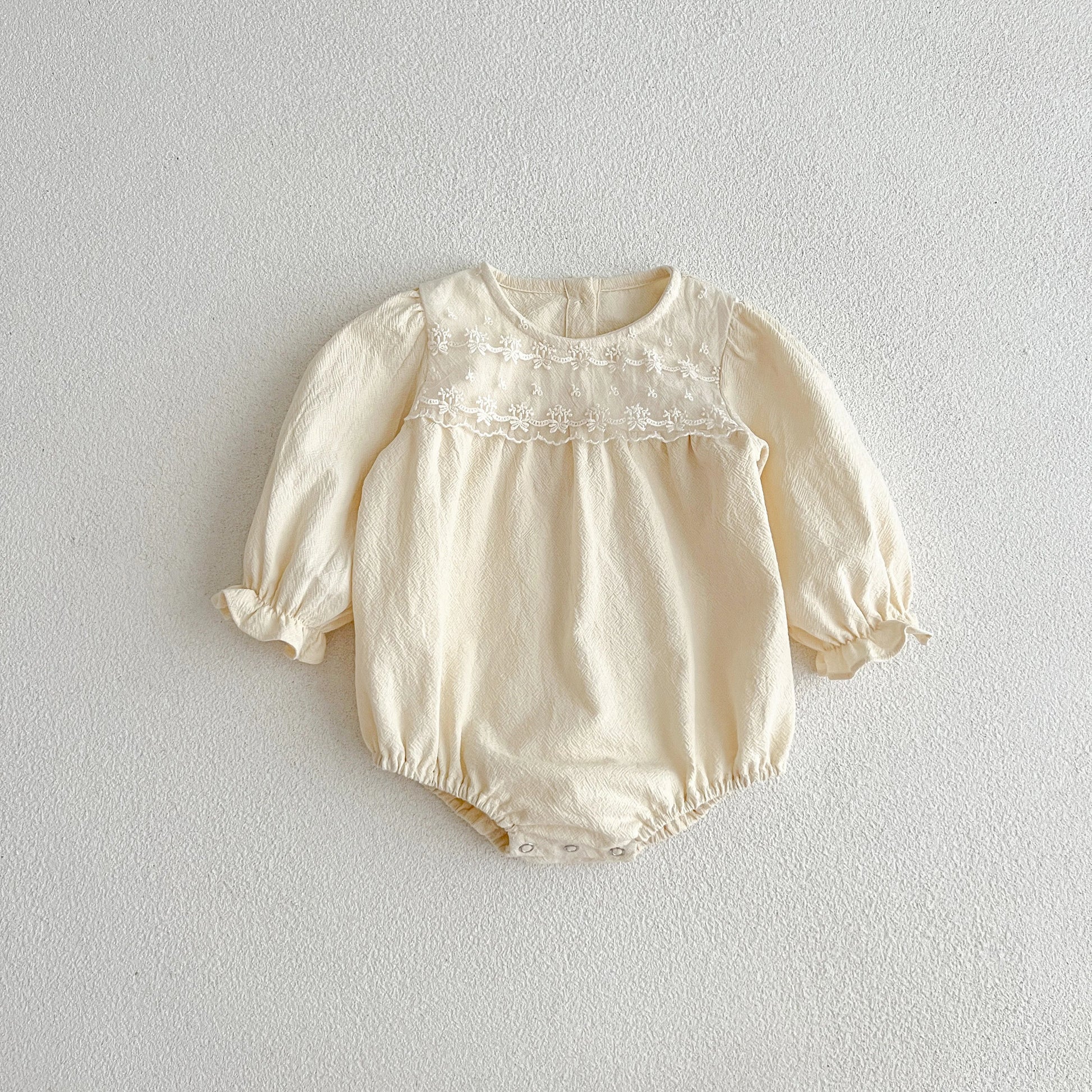 Enterizo para Bebé Niña con Cuello de Encaje – Mono de Algodón de Manga Larga para Primavera y Otoño