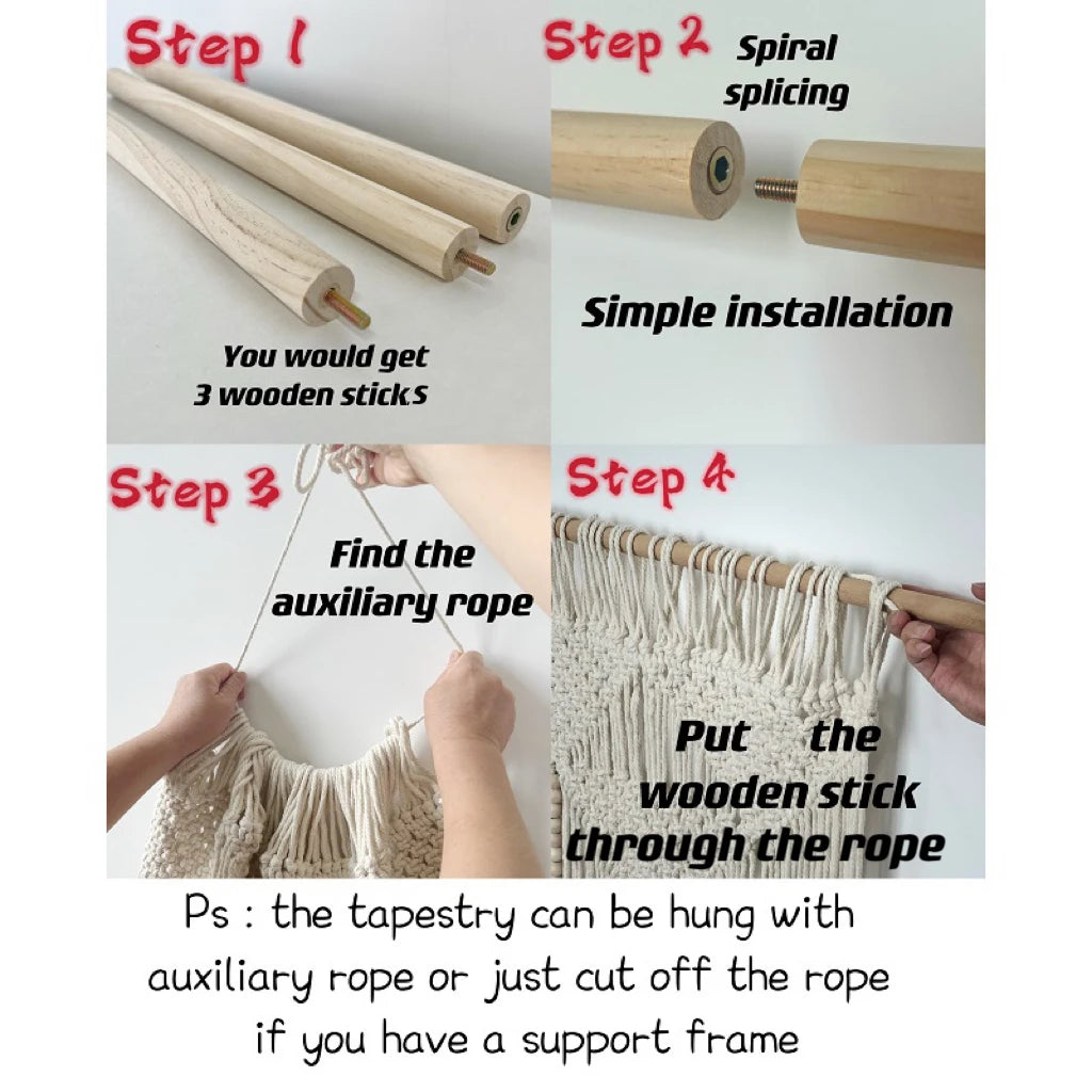 Tapiz de Macramé Bohemio Tejido a Mano – Decoración de Pared en Algodón Color Blanco Crema