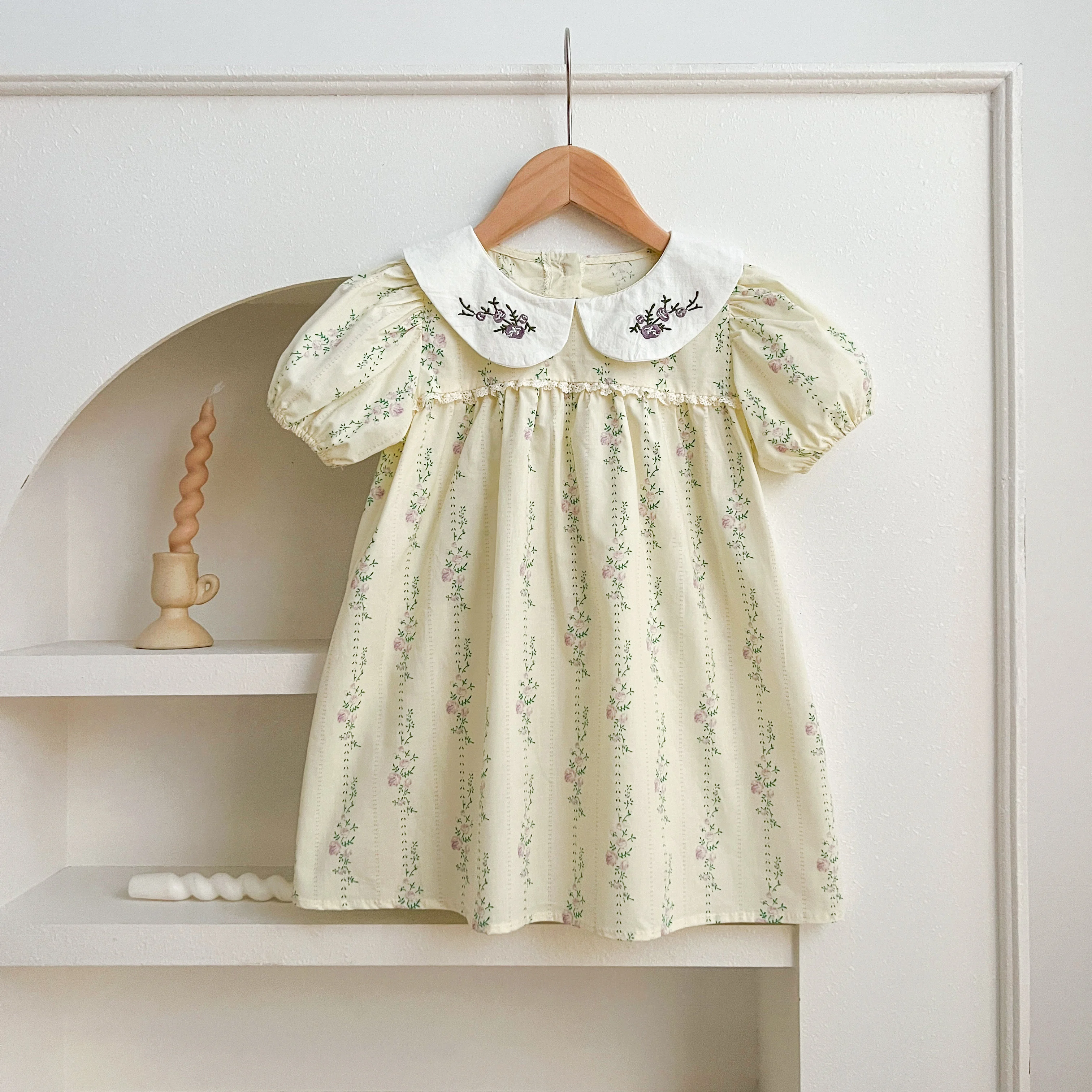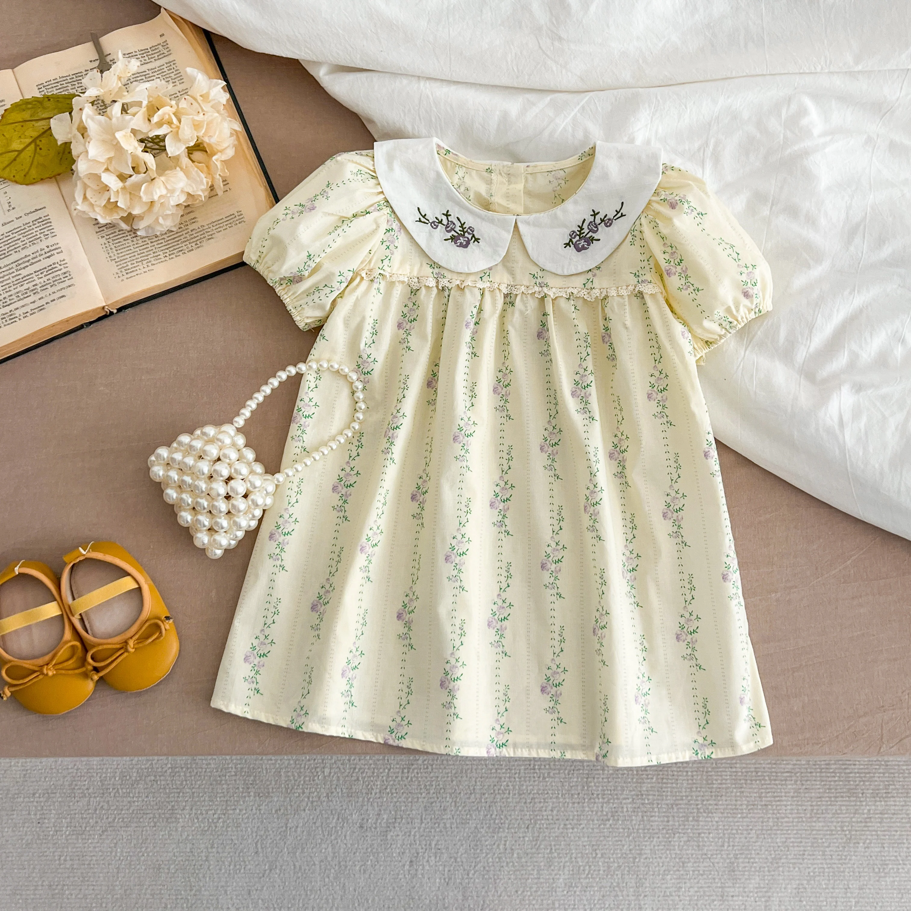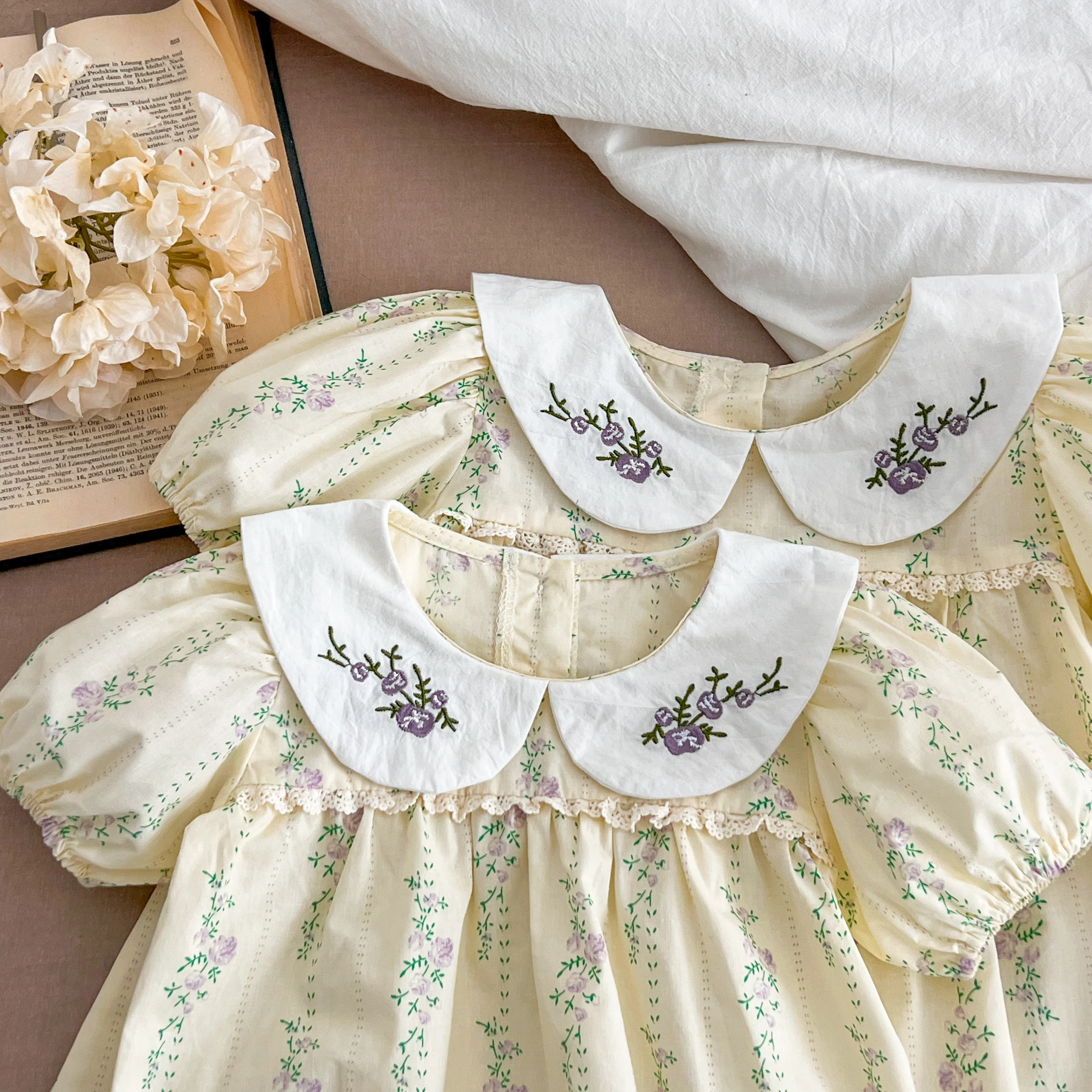 Vestido Floral Morado para Niñas – Cuello Bordado y Diseño Estilo Boutique (1–6 Años)
