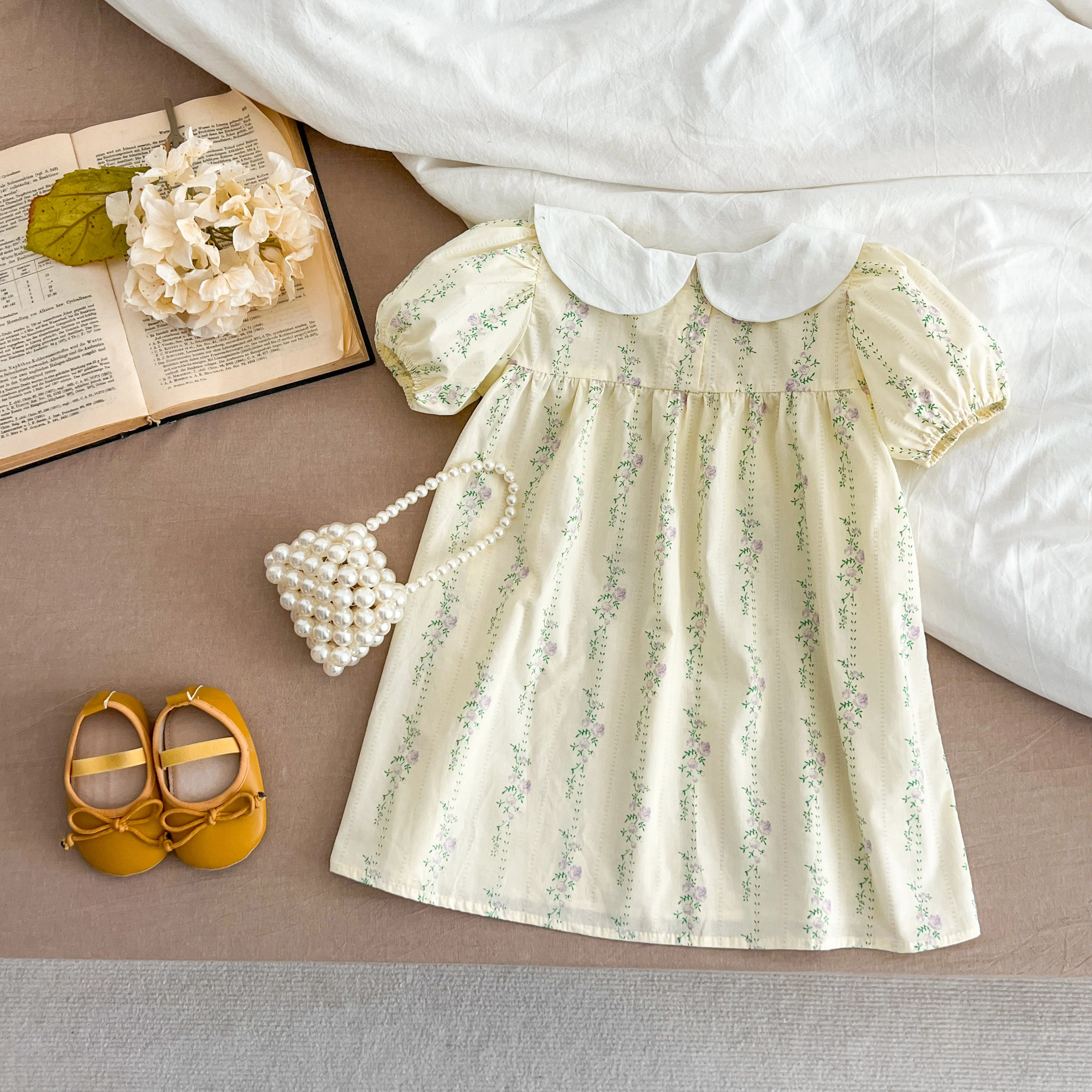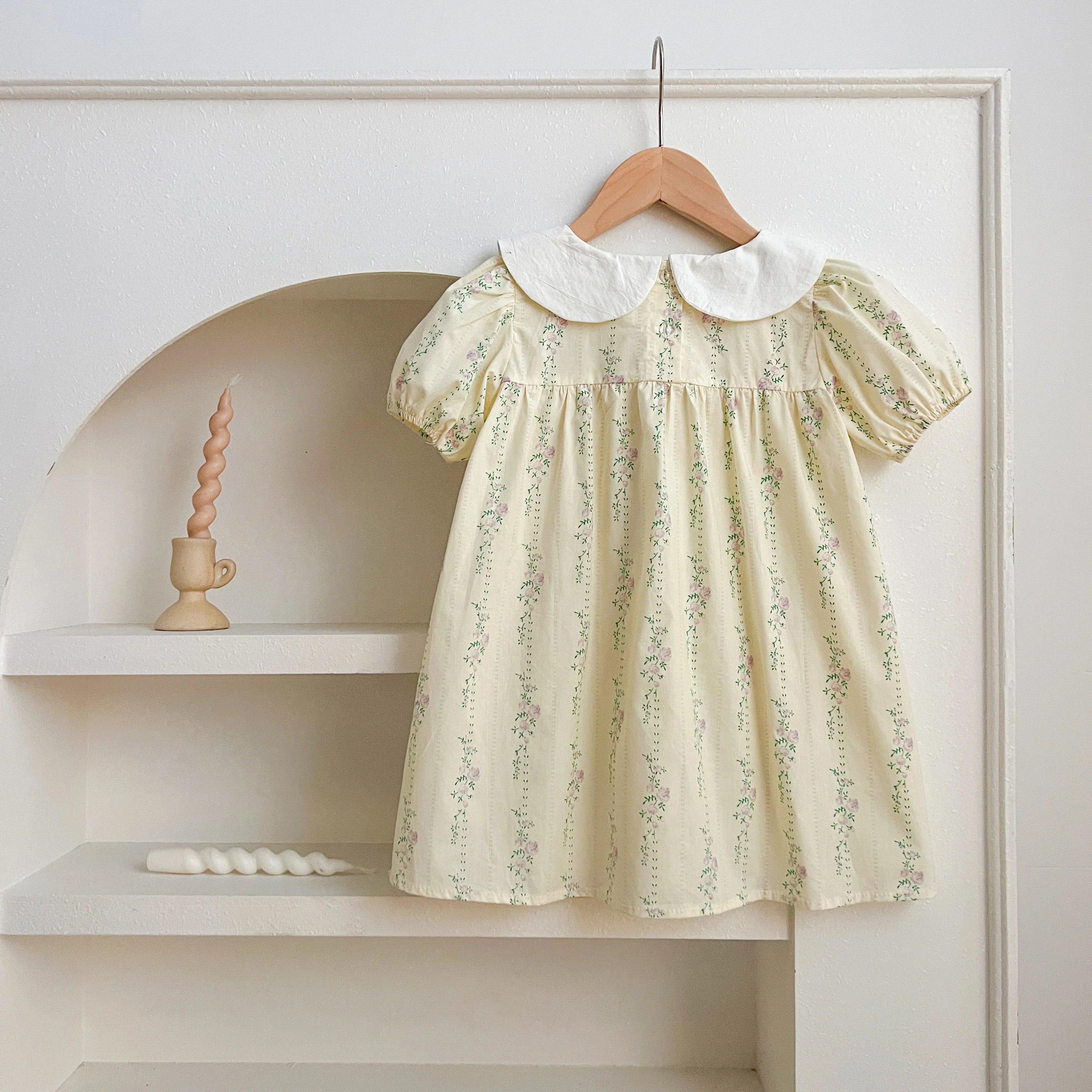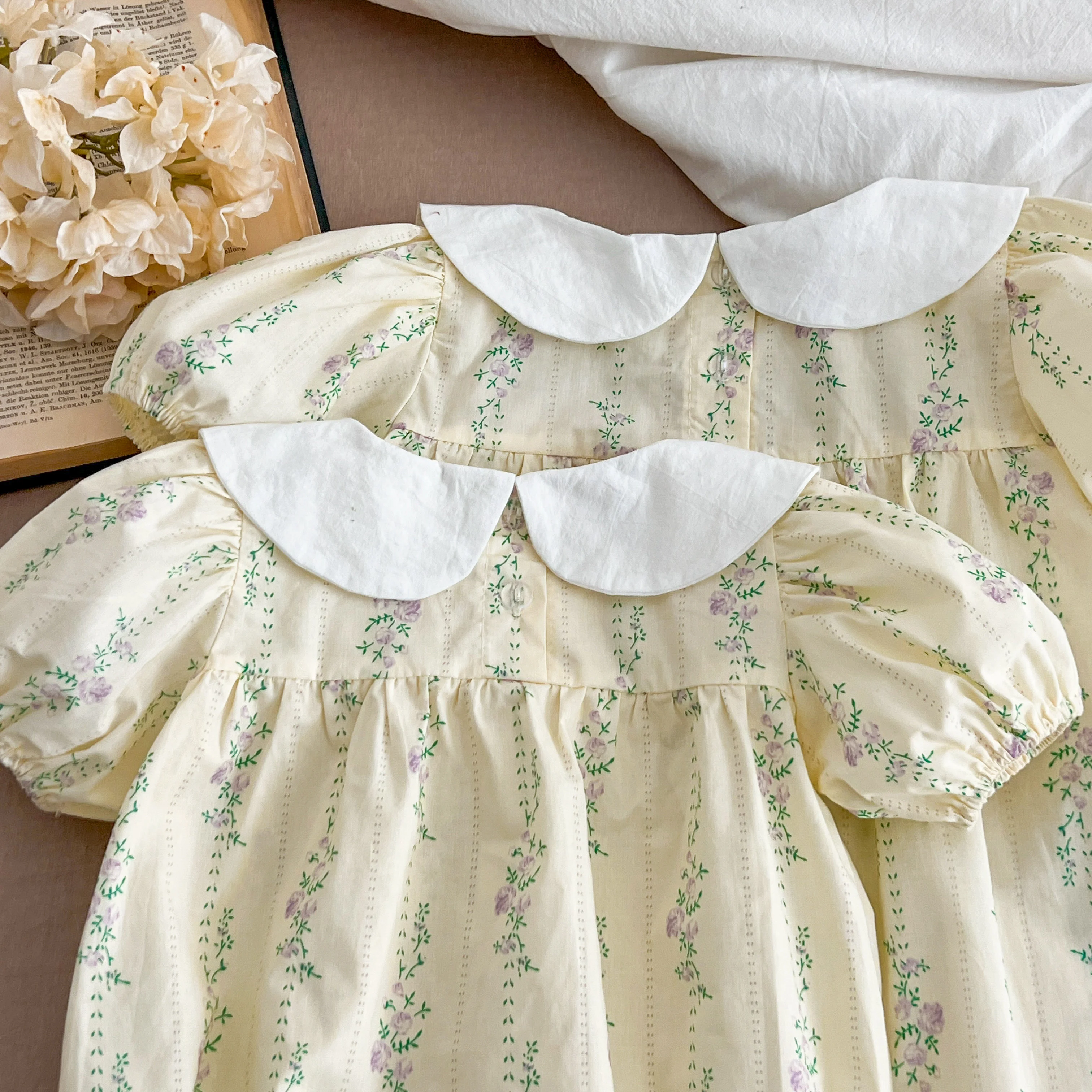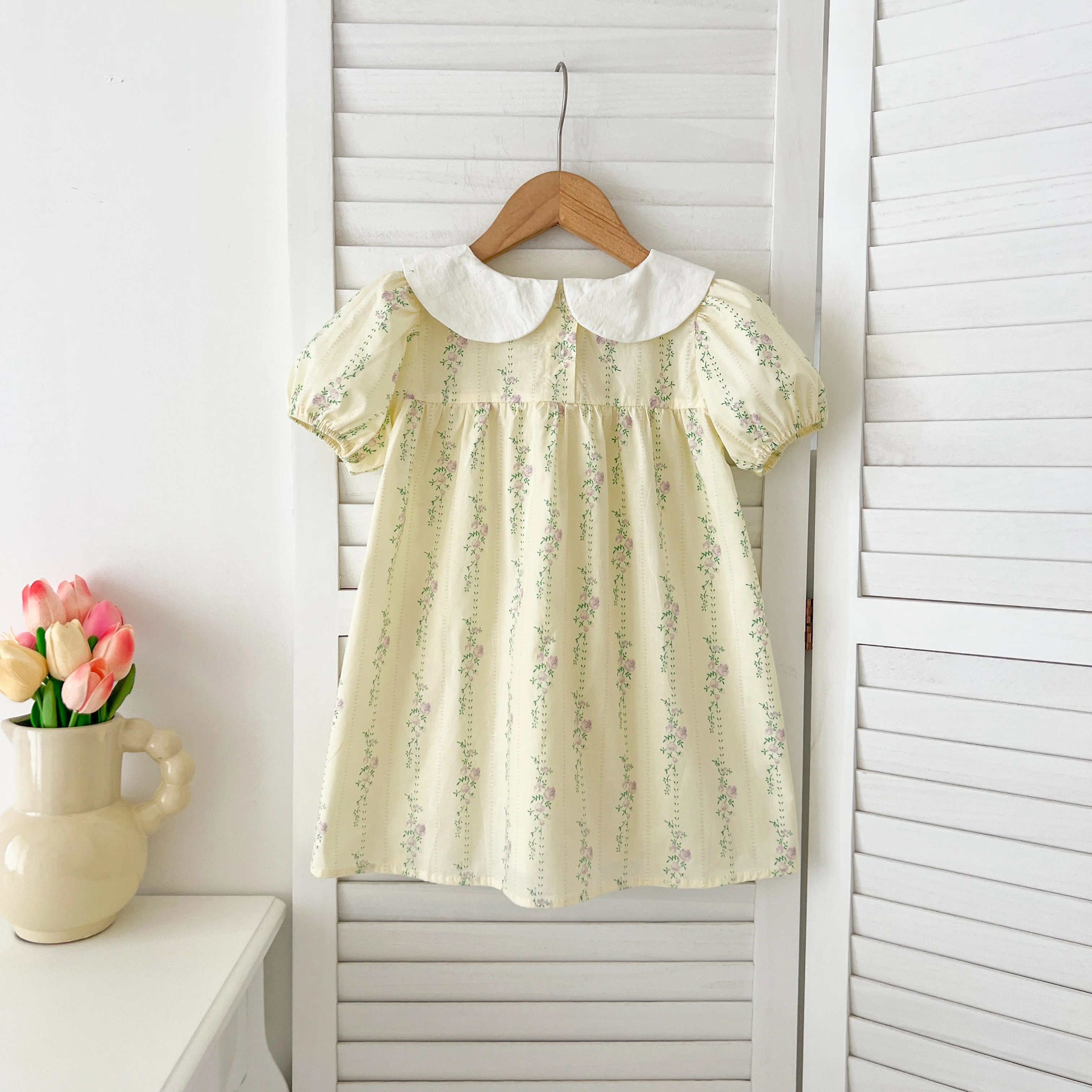 Vestido Floral Morado para Niñas – Cuello Bordado y Diseño Estilo Boutique (1–6 Años)