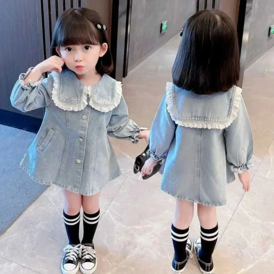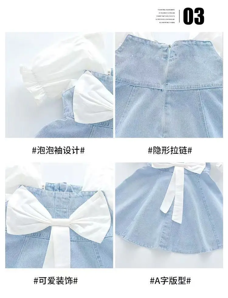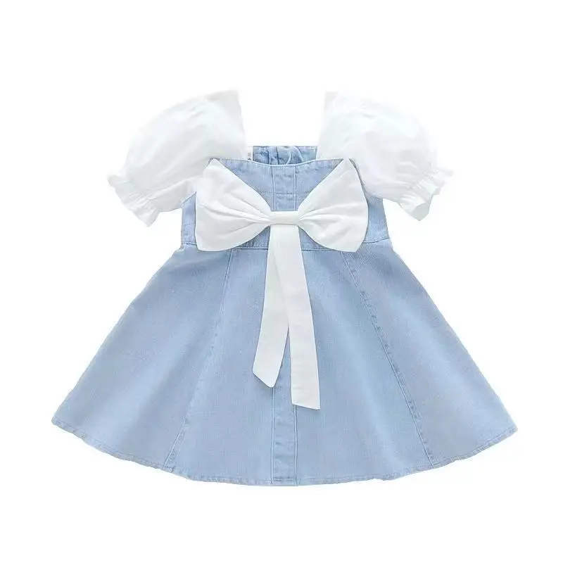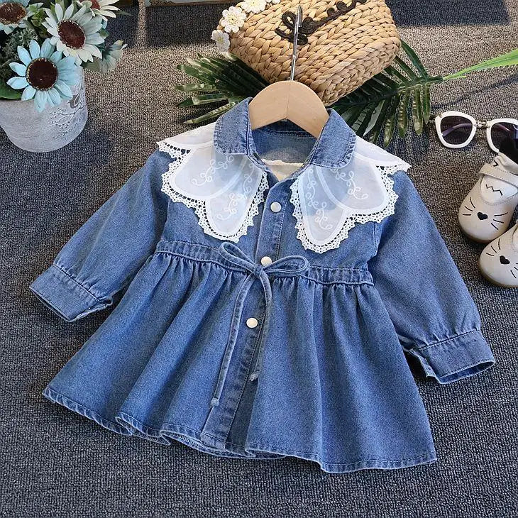 Vestido Infantil de Mezclilla para Niña – Estilo Princesa con Bordado y Lazo